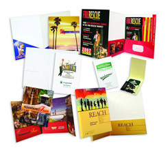 Put the finishing touch on your hard work with impressive, personalized folders and covers. We have numerous stock and custom sizes and variations including reinforced edges, file tabs, 3-panels, expansions, legal, 4" x 9", key & card holders and more. Features such as foil stamping, embossing, laminating and UV coating can give your piece a polished look that is sure to convey professionalism. Perfect for: